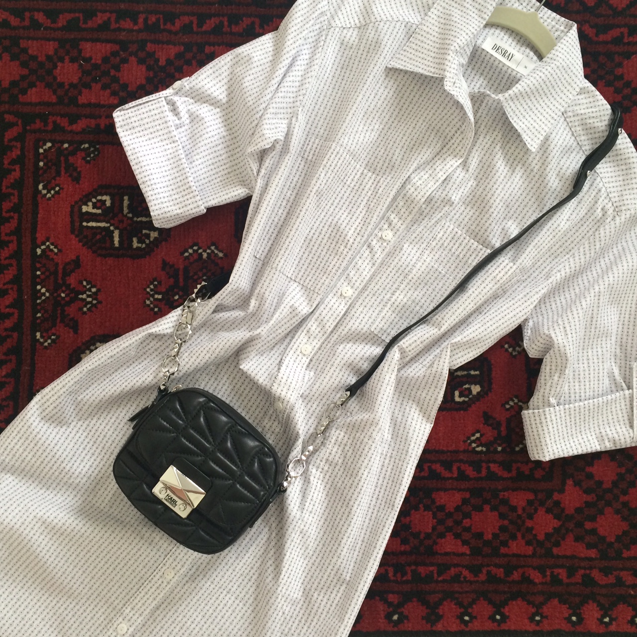 Because it’s on the smaller side, I think it’s the perfect evening bag. So you can get an idea of the size, I photographed it with my new Desray shirt dress (R780 – in stores now).
