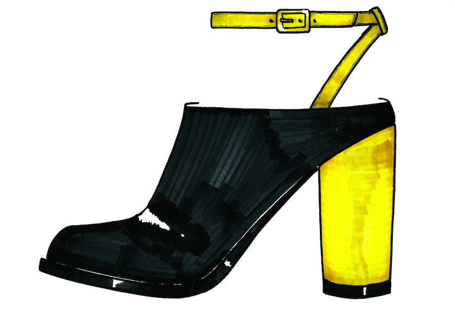 “For fall, we were inspired by the impossible amalgamation of two artists’ works that couldn’t be more different but are of almost the same time: German conceptualist Joseph Beuys and American pop artist Roy Lichtenstein,” said Susanne Ostwald, creative director for Ostwald Helgason.“In the collection we combine elements that are particular to their work: felt is merged with bright poppy leathers and vinyls, shiny meets matte, clean shapes are sliced, shrunk or cut away. We wanted to achieve a look that was polished and playful, and most importantly, wearable. Apart from aesthetics, we thought about practicality, so the shoes and bags had to feel as effortless gliding down the runway as dashing about on cobblestones.”