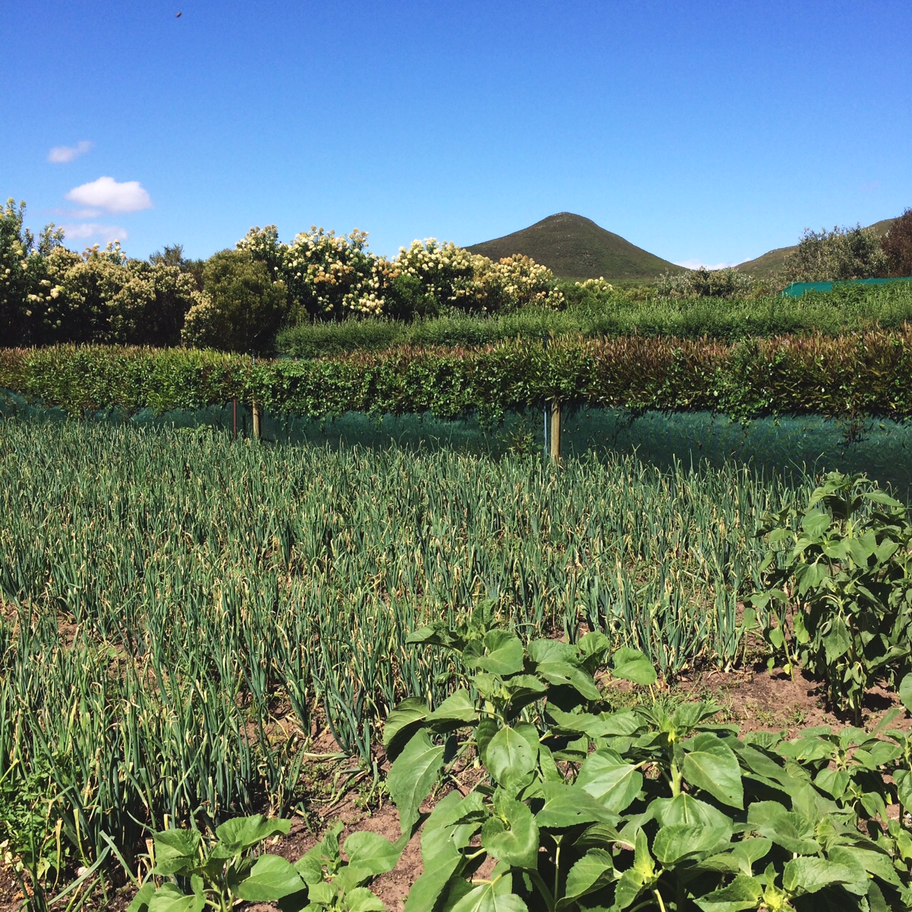 Rows and rows of delicious organic veggies & herbs