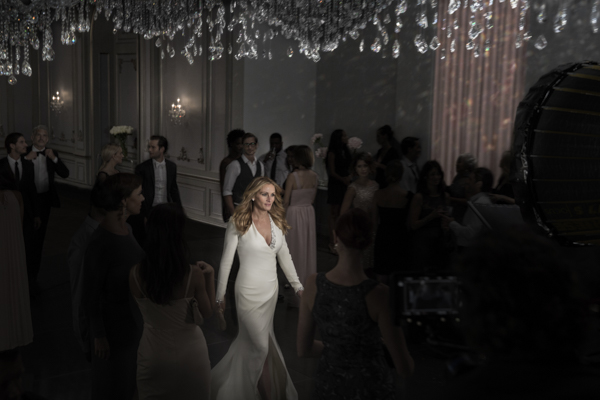 A sparkling rain that falls to the ground to discover a new place. We see an elegant evening and an equally elegant crowd. Is this what she’s searching for? Maybe. Not quite, maybe, in spite of the palpable joy and the warmer ambiance. Radiant, she dazzles the guests and invites them with an infectious smile to follow her, determined to continue on her quest.