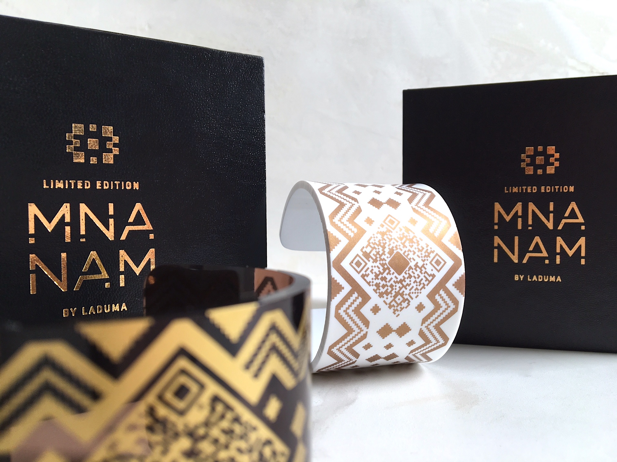Worn around the wrist, the Mna Nam is made from acrylic and fuses Laduma’s signature bold patterns with clever technology. The Mna Nam is embedded with a QR code that’s linked to WeChat Savings Wallet powered by Standard Bank. This allows you to simply scan and save. Wearing this fashionable accessory effectively serves as a very stylish visual reminder to save – effectively putting the power of financial fitness in your hands.