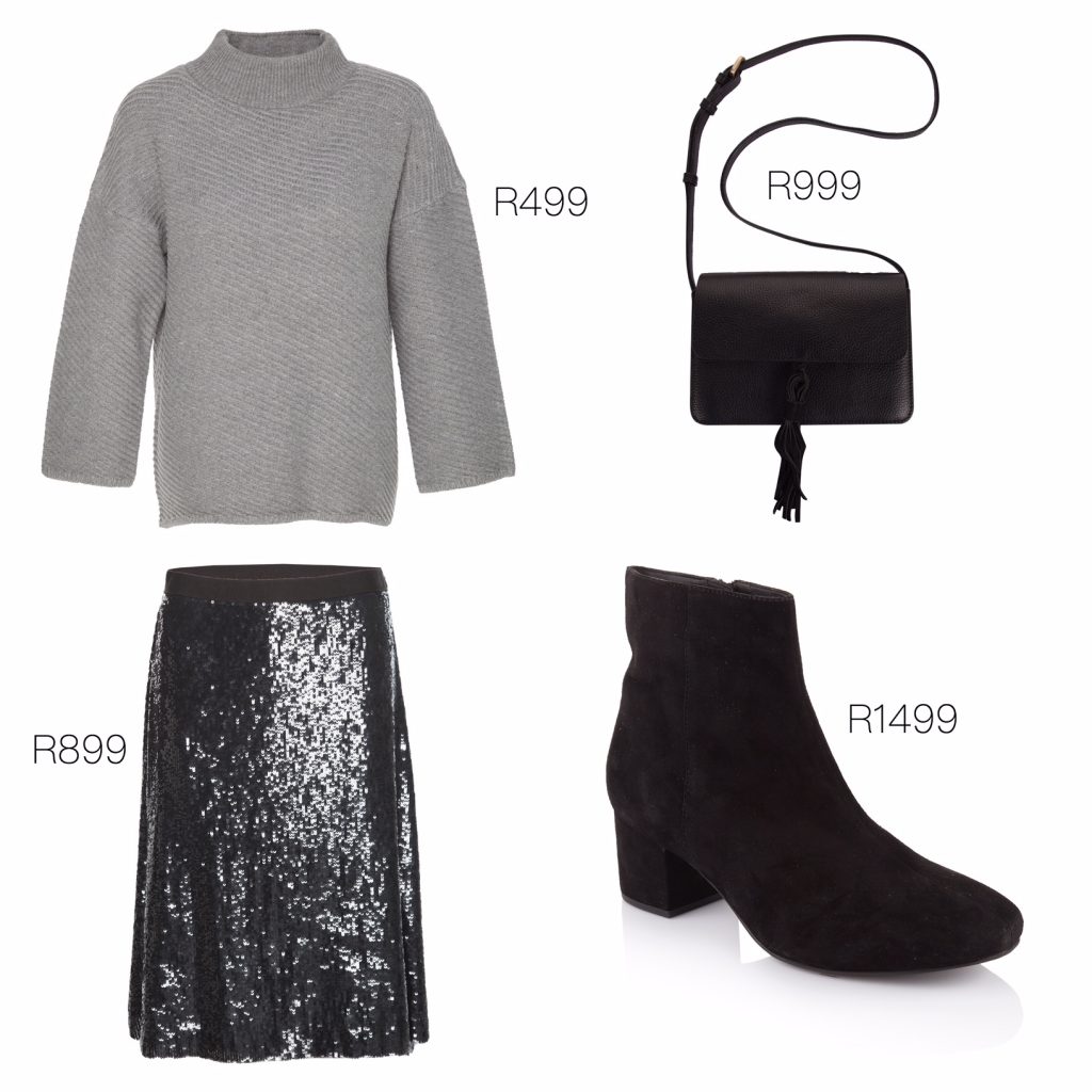 Pieces that are traditionally perceived as evening-focussed, now make an easy transition to daywear – think sequin skirts paired with chunky knits.