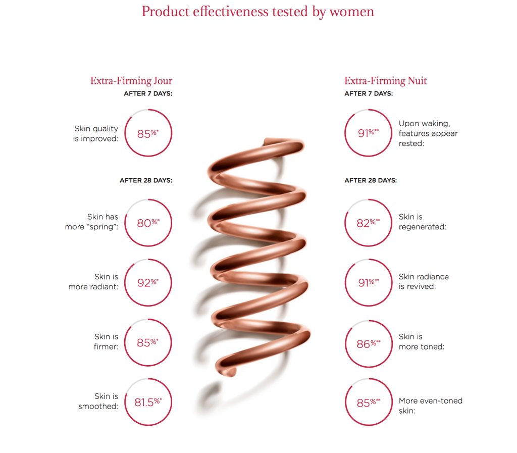 Take a look below at the product effectiveness trial done by Clarins on the Extra Firming duo.