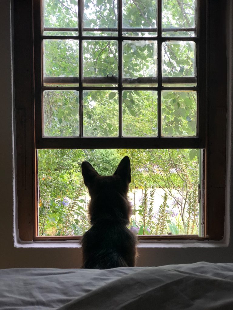 While this picture looks sweet & innocent enough, I have to tell you the back story. Momo had just let off a ripper of a fart & promptly walked to the window to breathe in some fresh air. I was left in bed with the lingering smell. And no, it wasn’t me that farted – in case you were wondering. See the next question #LOL