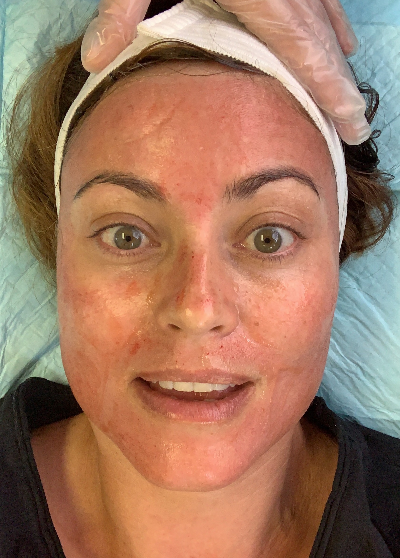 The PRP being administered into my face, followed by a Dermapen treatment.