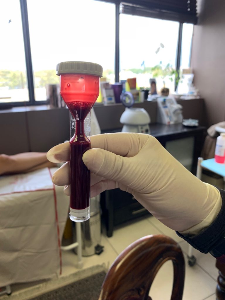 This blood is then put in a centrifuge machine and spun for around 20 minutes.