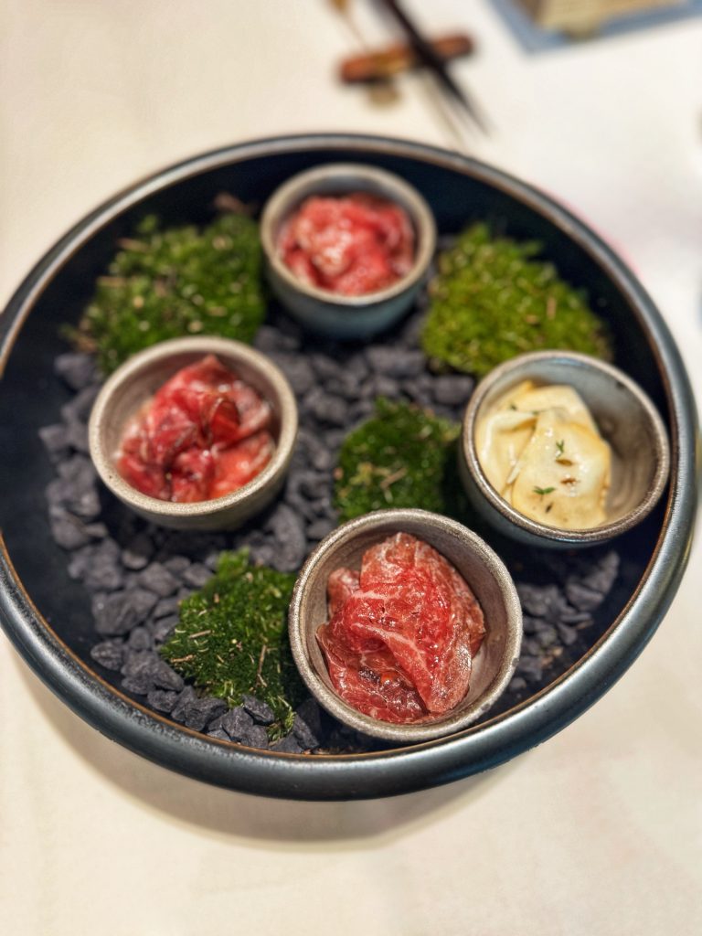 From the crisp white tablecloths to bespoke ceramics and elegant glassware, the space exudes understated sophistication. But it’s what arrives on the plate (and often, beside it) that truly sets this experience apart.