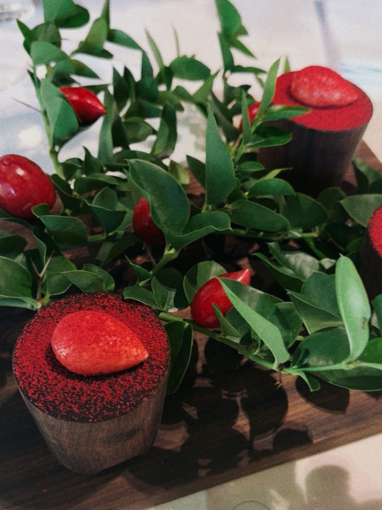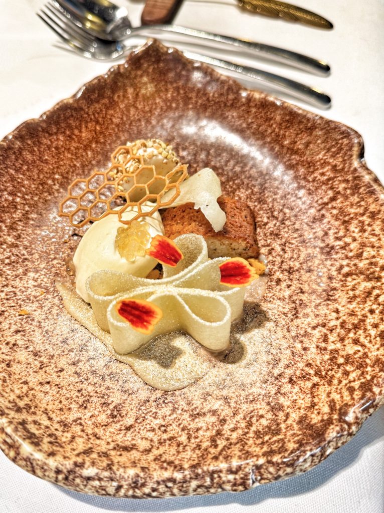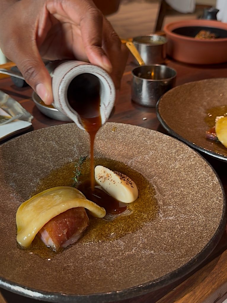 Then comes the show-stopping mead dessert, created in collaboration with Khanya Mncwabe of MATAWI. Instead of white sugar, the dish is sweetened with her small-batch honey, also used in a mead caramel and jelly. The result is complex, deeply local, and utterly memorable.